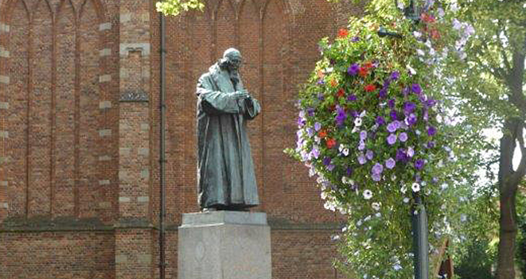 Nach all diesen unruhigen Lebensumständen - begleitet von Krankheit und Tod zweier Ehefrauen und Kinder - startet Comenius 1656 noch einmal neu: Er erhält eine Einladung der Stadt Amsterdam mit einem jährlichen Gehalt. Dort vermittelt er u.a. im Krieg zwischen den Niederlanden und England. In den letzten zwei Jahrzehnten seines Lebens kann Comenius nun in Ruhe weiter an seinen pädagogischen Schriften arbeiten und entwirft außerdem ein Konzept zum Weltfrieden durch einen Friedensrat, ähnlich den späteren Vereinten Nationen mit dem internationalen Gerichtshof in Den Haag. 1670 stirbt er und wird im niederländischen Städtchen Naarden bei Amsterdam begraben - übrigens, ein wunderschönes kleines Städtchen und gar nicht weit von hier.