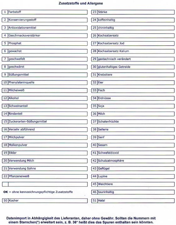 Zusatzstoffe und Allergene