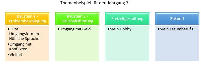 Des Weiteren findet ab Jahrgang 7 eine Verknüpfung mit dem ´Fit for Life` statt. Hier werden u.a. die Themen ´Mein Traumberuf`, ´Mein Praktikum` und ´Bewerbung schreiben` behandelt.