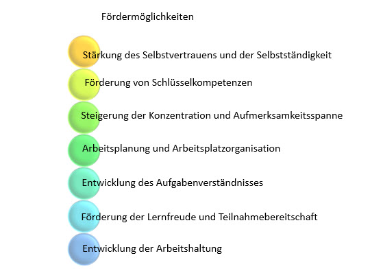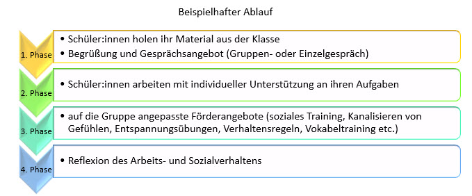 Ziel ist die emotionale Stabilisierung und der Aufbau sozialer Kompetenzen. Außerdem soll mit dem Erlernen und Üben von unterrichtlichen Strukturen in einer ruhigen Lernatmosphäre eine sukzessive Rückkehr in den kompletten Unterrichtsalltag einhergehen.